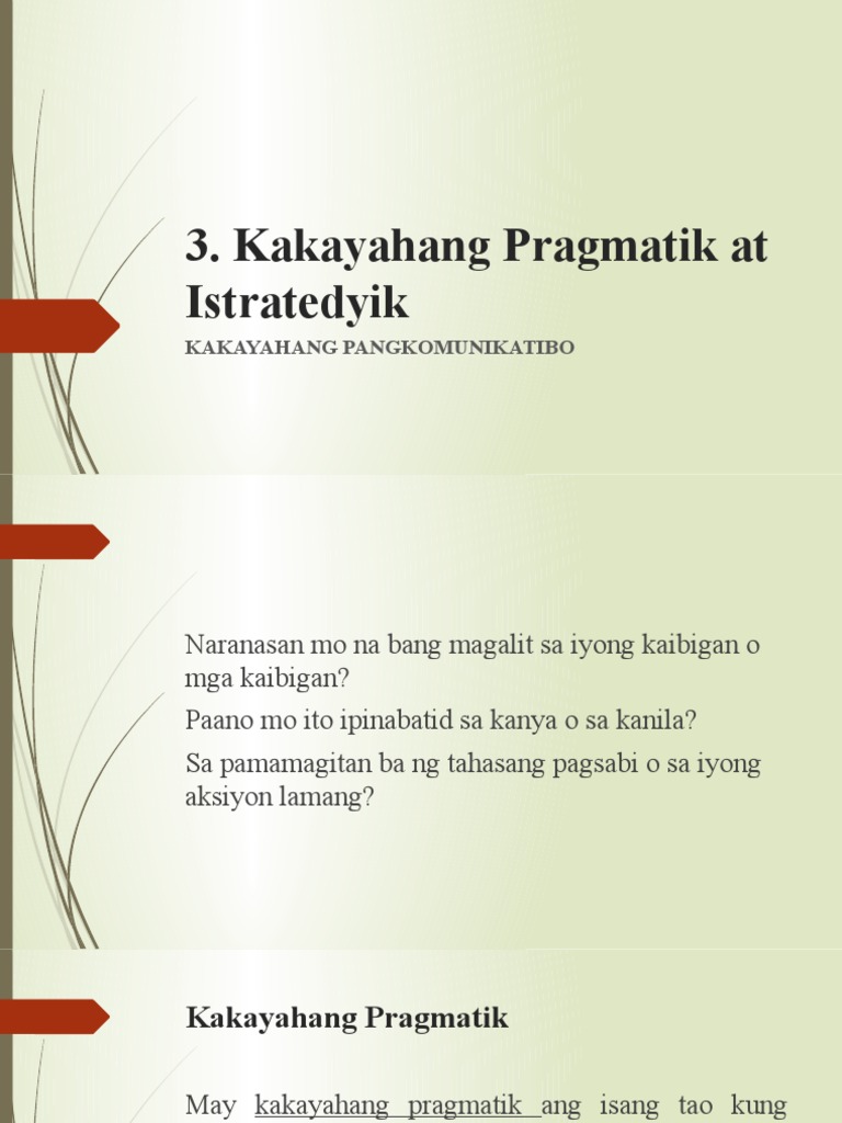 Start studying kakayahang istratedyik at pragmatik. Contextual translation of kakayahang istratedyik into english. Paano nakatutulong ang kakayahang istratedyik upang maunawaan ang ibig sabahin ng tagapaghatid ng mensahe. Pagsusulit sa komunikasyon at pananaliksik sa wika at kulturang pilipino. Masasabing ang kakayahang mamahala ay isa sa pinakamahalagang karakter na hinahanap ng mga kumpanya sa kanilang mga aplikante. J.c.f.a 3pragmatikpagganyakmga layuninkakayahang pragmatik matutunan ang kahalagahan ng. Spam robot я не робот посетить сайт. Kakayahang lingguwistiko sa wikang filipino. Hal., paggamit ng angkop at wastong pangungusap. Sell, makaahon, impressed, feasibility, responsiveness. Powtoon is a free tool that allows… Please fill this form, we will try to respond as soon as possible. Mahalaga mahalaga ang kakayahang pragmatiko bilang daan sa pagiging epektibo ng report pragmatik at istratedyik.